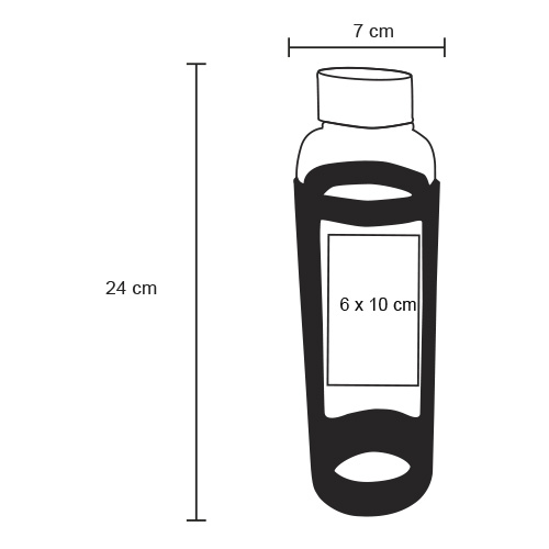 Cilindro de vidrio con tapa metálica enroscable y funda de silicón.