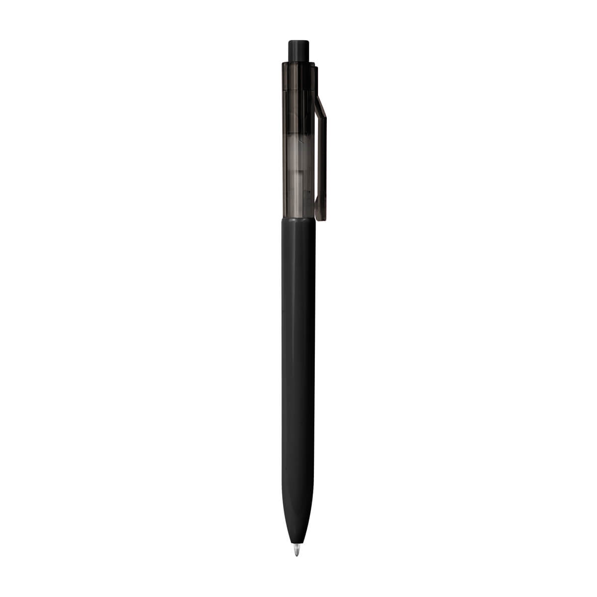 Bolígrafo de plástico con clip transparente. Mecanismo pulsador.